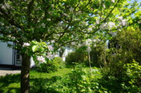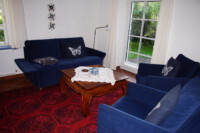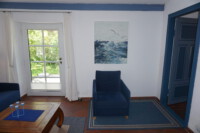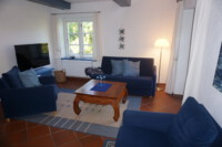 Die 3 1/2 Zimmer Ferienwohnung (ca. 105 m²) finden Sie im Erdgeschoß des wunderschönen Reetdachhauses mit eigenem Eingang vom Innenhof. Vom Wohnzimmer kann man direkt die Terrasse und den Gartenbereich betreten, der zu dieser Ferienwohnung gehört.